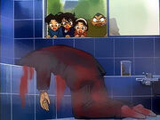Mitsuhiko e gli altri vedono il corpo senza vita.